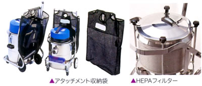 ●信頼性の高い高性能DCバキュームブロワモーター搭載 侮れない性能でしっかり吸引 最大吸引風量2.1m3/min 最大吸引圧力 12.4kPa ●中身が見える化の透明タンクを標準装備(14g) 静電気の軽減と除電にステンレス ワイヤーをインサート(特許) 米国FDA準拠の安全な材質 ![]() ●オプション ![]() ※お客様のご要望にお応えできる豊富なオプションカスタマイズの提案、制作もご用命ください。 ■付属アタッチメント