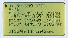 ■各部名称 ![]() ![]() ![]() ![]() ■視認性にすぐれた「測定時表示画面」 ●瞬時値と積算値を同時に表示 ●設定時間・ダウンタイマー・電池残量を表示 ●測定中にボタン一つでトレンドグラフを表示 ![]() ![]() ■便利な「簡単ログ機能」 ダウンタイマ測定またはマニュアル測定の結果を本体内のメモリーに記憶し、測定終了後PCへ測定データを転送することができます。(1回の測定で1個のデータ) ![]() ■安心の「メンテナンス」 ●フィルターの使用時間が一目で確認できます。 ![]() ●レーザーダイオードと吸引ポンプの動作設定ができます。 ![]() ![]() ■使いやすい「設定画面」 本体の設定をPCで変更できます。 ![]() ■確認が簡単な「記録データ画面」 本体からロギング測定または簡易ログ測定により記録されたデータを読み込めます。 ![]() ■仕様
