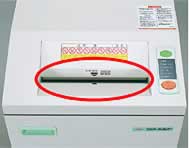 | ■セキュリティ対策も万全です。 圧縮細断・クロスカット方式の採用で、セキュリティ機能をしっかり確保。 さらにかさばりの少ないチップ状態を可能とし、細断チップの収容力を高めました。 ●紙・クロスカット ![]() ■メンテナンスフリーの強靭なカッタを搭載 シュレッダのメンテナンスで最も手間と費用を要するのがカッタの取り換えです。 シグマシュレッダでは、カッタ材料に工具鋼を使用し刃を焼入れ処理。 独自の形状設計とトルクの大きいモータを使用することでこの問題を解決しています。 ![]() ■カラーユニバーサリーデザイン認証を取得 当社は、シュレッダで初めてカラーユニバーサルデザイン認証を取得いたしました。 色覚の個人差を問わず、できるだけ多くの人に使いやすいよう配慮して作られていると認定されました。 左図のようにスタートボタン、ストップボタンを離すことにより誤操作を防ぎ、安全性を高めています。 ![]() ■安全対策 投入口の安全対策 全機種の投入口は事故防止対策を更に強化させ、投入口の隙間を5mmと3mmに設定しております。 細断能力の高い機種には"投入口安全機構"を搭載、投入口に設定以上の力が加わった場合に、自動的にカッタを停 止させます。 ![]() ■誤操作防止対策 全機種に“メインパワーオートオフ”機能を搭載。一定時間操作が行なわれないと自動的にメインスイッチをOFFにしま す。 ※メインメインパワーオートオフ切換スイッチで“メインパワーオートオフ”機能の作動要否の切り換えができます。 ■データメディアの跳ね返り防止対策 データメディアが細断可能なMC42GX-C312MSのメディア投入口には、飛散防止のためデータメディア投入後、安全カ バーをしないと細断ができない安全設計です。 ![]() ■環境対策 ●待機電力 0W (ゼロワット) 全機種"メインパワーオートオフ"機能搭載により、使用していない状態が一定時間続くと、自動的にメインスイッチを OFFに して待機電力を0W(ゼロワット)にします。 ●紙・データメディアの分別収納 紙とデータメディアが細断可能なMC42GX-C312MSは、紙とデータ メディアの投入口を分け、細断チップを別々のチッ プボックス に収納します。分別処理に適したシュレッダです。 ![]() ■主な機能と安全機能