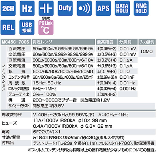 | デジタルマルチメーター(高確度高分解能PC接続)/品番 MC45C-700S |