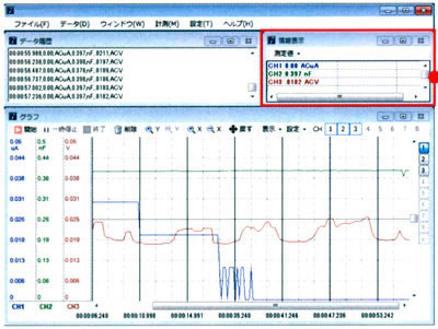 ●データを取り込みながら、縦横ズーム、カーソル表示、Y軸分割等の表示や変更が可能。