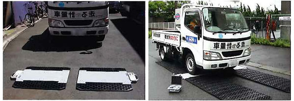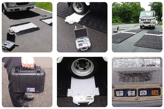 | ■特長 ●配線不要の無線式を実現。ケーブル事故の心配は不要です。 ●設置時間はたったの5分。ケーブルが絡まる心配もなく、作業効率が大幅アップ。 ●IP66性能で水に強いロードメーターを実現。 ![]() ●厚さ34mmの超薄型採用により、高精度(静止計量:±0.1%F/S)を実現。 ●タフでスマートな計量パッドに、自重4.2sのコンパクトな指示計。 ●指示計にはプリンターが標準装備。 ●データボックス(指示計)からUSBメモリーへデータ記録が可能。 ![]() ●精度について ・±0.1%F/S(静止)は本体1つに対してスロープ2枚で全軸同時計量の精度となります。 ・±3〜5%F/S(通過)はデータボックス1つに対してスロープ2枚、助走路2m、時速10km以内で計量した際の精度となります。 ■指示計操作部 ![]() ■使用例 ![]() ■仕様