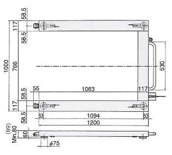 | ■特長 ●台秤として利用可能 お手持ちの丈夫なパレットなどを上に載せて台にすれば、れっきとしたデジタル台秤の完成です。 ●自重が軽い 簡単に移動させることができます。 ●省スペースで保管 使わないときは壁などに立てかけて保管しておけるので、特定の場所を占有してしまうことはありません。 ●車輪付きで移動が簡単 標準装備の移動用車輪で簡単に移動ができます。 ●スマートフォンで広がる用途 コントロール・表示・データ管理・共有に活躍。パソコンまでのデータ転送が簡単にできます ![]() ■寸法図 ![]() ■仕様