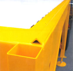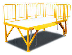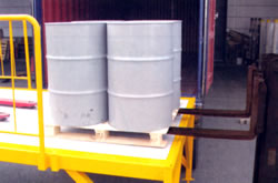 専用のプラットフォームなしで狭い敷地内でもバンニングできます。 コンテナへのセットはフォークリフトででき、また高い安全柵とハシゴ付のため安全に作業できる設計です。 MC49VS-0420S上で荷物の整理も出来ます。 |