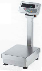 | ■特長 ●優れた防水・防塵構造のタフなボディ 計量部・表示部は、耐久性・耐腐食性に優れたオールステンレス製。密閉構造のI65規格適合なので、じゃぱじゃぱ洗えて粉じんや水分の多い現場でも安心です。 また、内部構造には、電波障害に強く堅牢・耐薬品性に優れたアルミダイカストを使用。現場使用を重視した頑丈設計です。 ![]() ●斬新なデザインで見やすく使いやすい操作パネル 操作パネルに曲線を使った斬新なデザインで、操作性が大幅アップ。さらに表示部には大型蛍光表示を採用しているので、暗い現場でも文字がはっきり見えて、読み取りが大変ラクです。 ![]() ●測定結果を最大5点で判別する「コンパレート機能」 はかりに限界値を記憶させ、測定値がどのランクに入るか判定表示します。良品不良品の判別や、一定量の測りこみに大変便利です。 ●スムーズな角度調整 標準タイプでは、パネル角度を無段階で調整が可能。場所や用途に合ったパネルのペストポジションが選べます。 ![]() ●用途に合わせたタイプ変更 使い方や使う場所に合わせて、標準のポールタイプやセパレートタイプに出来ます。表示部一体用金具(オプション)を使えば、コンパクトな一体タイプにも早変わり。(ケーブル長1m) ![]() ●RS-232Cを標準準備日付や時間もISO/GLP/GMP対応書式で印字 RS-232Cインターフェイスと周辺機器出力を標準装備。カレンダー・時計機能を内蔵しているので、ISO/GLP/GMP対応の出力が可能です。 ※出力を接続するとIP65適合外となります。 ![]() ■共通仕様