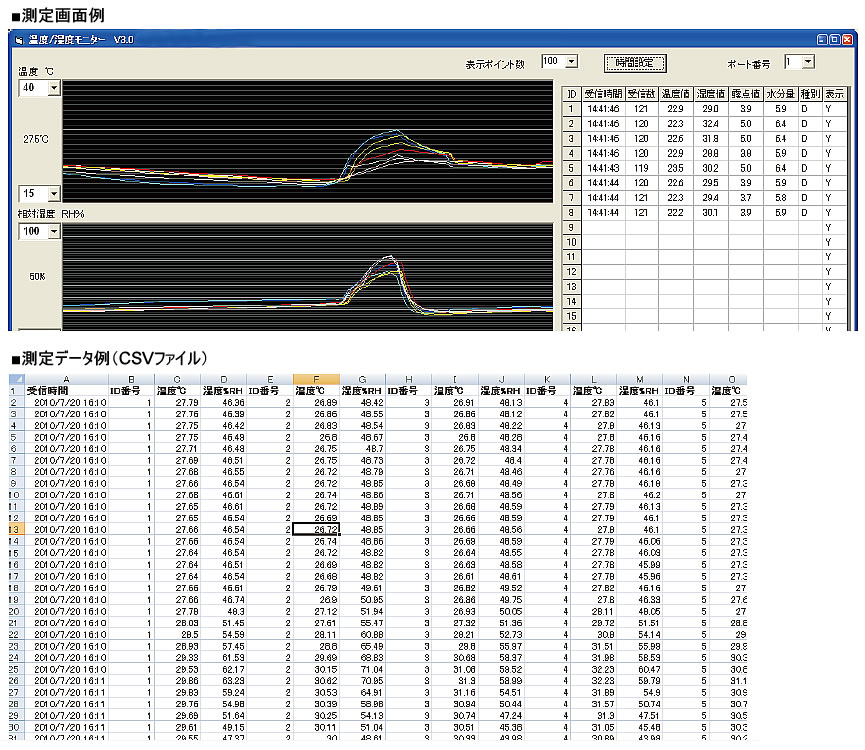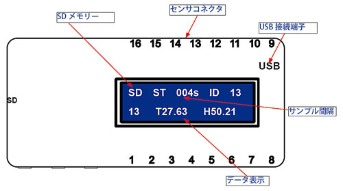 | ■特長 ●超小型サイズ 16チャンネルでありながら、136×61mmの小型ポケットサイズでどこへでも設置できます。 ●高精度・高分解能 完全キャリブレーション、完全互換のセンサ。リニアりてぃも最高水準の精度を誇ります。 ●温度・湿度などを液晶表示 現在測定中の温度・湿度サンプリング間隔を常に液晶表示します。 ●USBでPCと簡単にインターフェース パソコンとUSBケーブル1本で接続できます。電源もUSBから供給します。 ![]() ●記録媒体は市販のSDメモリーカード 2GBまで使えますデータフォーマットはWindowsで、文字形式になっていますので特別なアプリケーションプログラム無しでEXCELでダイレクトにデータを読めます。 ●センサの種類、センサケーブルの長さが選択可能 センサの種類、長さをシリーズ化しており用途によって選択できます。 ●同期 最大50台までの同時サンプリングが可能です。 ●2.4GHz無線搭載 約100mの無線通信が実現。従来の有線でのリアルタイム計測、外部電源を使用してのSD記録に加え、離れた場所でのリアルタイム測定もできるようになりました。受信機を接続すると自動的に無線仕様となります。 ![]() ■充実の機能 <測定モード> ●モバイルモード 外部電源で駆動し液晶にデータを表示できるほか、SDメモリーにデータを記録できます。 ●USBリアルタイム測定モード 測定データはUSBでPCに送られその場でグラフが描かれていき、変化をリアルタイムで見ることが可能です。 ●無線モード 受信機をPCに接続すると自動的に切り替わります。無線で送られたデータがすぐにグラフ化され、リアルタイムで変化を確認できます。 ・USBが接続されるとMC58ML-16WLSは自動的にデータをPCに送ります。 ・センサは1本から16本まで任意の場所に差し込むことができます。 <測定間隔> 本体の操作はサンプリング間隔設定用押ボタンスイッチ、特定のIDの温度湿度表示用の押しボタンスイッチで行います。サンプリング間隔の設定は、「1、2、3、4、5、6、7、8、9、10、20、30、40、50、60、120、180、240、300、900秒」から選択します。 ※パソコンからサンプル間隔の設定は行えません。 サンプル間隔とは全センサをスキャンする間隔で、例えばセンサが4個接続されていて、サンプル間隔が5秒に設定されている場合、5秒ごとに4個のセンサの全データが送信されます。各センサのデータは液晶画面で確認することができます。 <センサ種類の指定> 各16チャンネルごとにセンサのしゅるを指定することができます。 (例:1は温湿度、2は熱電対、3は不使用、4温湿度・・・) <その他> 外部トリガー機能追加 内蔵RTC機能だけでなく外部からのトリガー信号によって測定する機能を追加(親機を指定して、親機が信号をだし、子機に信号が伝わる) ![]() ■測定画面例/測定データ例(CSVファイル) ![]() ■主な用途例 ●恒温槽・温湿度チャンバー試験 ●各種車両試験 ●住宅・空調環境測定 ●各種信頼性評価試験 ●モバイル計測 ●生体計測 など ■基本仕様