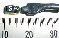 ■オプション ●温湿度センサケーブル 温度・湿度センサはMC58HT71 / MC58HT75を使用しています。このセンサはシリコン微細加工技術により、静電容量ポリマーの湿度センシング素子と温度測定用のバンドギャップ温度センサがシングルチップに装備されています。またチップ内部でアナログ値をA/D変換として出力されますので、外部ノイズの影響がなく温度は14ビット、湿度は12ビット分解能でデータを測定することができます。 全ての湿度センサは鏡面冷却式露点計をリファレンスとして校正され、そのキャリブレーションメモリがチップにプログラムされています。ユーザー側での校正作業の必要はありません。湿度センサは通常環境では長期間安定して測定できます。従来の抵抗式湿度センサのように結露で使用不能になることもありません。