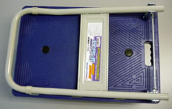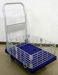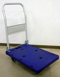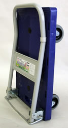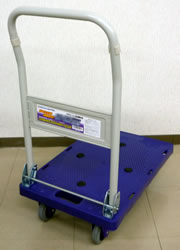 | ■特長 <折りたたみ式・折りたたみ式自立タイプ> ●普通台車では、物を運ぶ時キャスターと床面の抵抗が、音と熱に変化抵抗に代わってしまいますが、当商品ではラジアルボールベアリングと特殊ゴム車輪の作用によってモノを運搬する際の音を極限まで抑えることに成功しました。 ●モノを載せて曲がるときも簡単に右左折できます。 ●女性から高齢の方にも便利に使って頂ける優れモノです。 <折りたたみ式自立タイプ> ●自立しますので狭い場所で収納できます。収納スペース1/3以下。 ●自立用スタンドを踏むことで、多少の段差も前輪を浮かして簡単に乗り越えることが可能です。 ■タイプ