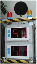 | ■概要 騒音振動計を搭載した2桁+2桁の表示部と制御部の一体型デジタル表示器です。 騒音計・振動計の計測値をデジタル信号(RS232C)で大型7セグメントLEDに転送し、騒音、振動計の指示値を遠方からも明確に確認できる装置です。デジタル表示のため、内蔵の騒音計・振動計の指示値と、大型7セグメントの指示値は同じ値を表示し見やすく設計されています。 また、搭載している騒音計・振動計は内部にメモリーカードを格納しているため、長期間のデータの記録を可能にでき、これらのデータを基に現場での騒音、振動の日報、月報などの報告書の作成も可能です。 取付けはU型のフック及びクランプにて単管などに簡単に設置できます。 ■主な機能 ●騒音振動レベル表示機能 ●警報機能(騒音、振動) ●データ記録機能 ●規制値設定機能(騒音、振動) ●表示部(7セグLED)ON/OFF機能 ●日報、月報、作成機能