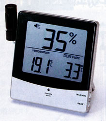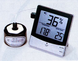 ●温度、湿度、露点の表示ができます。 ●湿度は上下限設定ができ、光と音でお知らせします。 ●測定中の最大値、最小値が表示できます。 ●プローブは457mmまで延長可能。 ●壁掛式、スタンド式どちらでも使用できます。 ●オプションの校正ポットで簡易校正ができます。 |