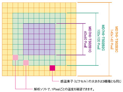赤外線サーモグラフィ温度計 品番 MD7HI-T502B1Cシリーズ 価格は下記をご覧ください。 |