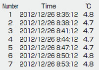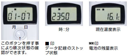●簡単操作 記録開始、停止はボタンを押すだけ。 シンプル・便利・簡単操作のソフトウェアー付属。 ●16000データ数 温度データは最大1万6000個のデータを記録可能。 例えば30分インターバルでは330日分のデータを記録。 |