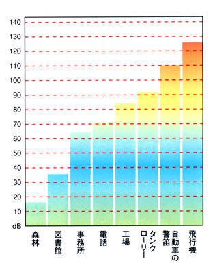 ■技術資料 オンサの先端を叩くと音が出ます。これは叩く事によりオンサが激しく振動し、周りの空気を周期的に揺さぶります。すると、空気には周期的に蜜な部分と疎な部分ができ、空気の振動が縦波となって耳に伝わります。 このように、空気中で物体が激しく振動すると空気の粗密波ができ、この波が我々の鼓膜に達し、そのうちの20~20,000Hzの周波数帯域を、音として感じることができます。このような縦波を音(音波)といいます。 音とは空気の振動です。工場等では実際に機械が稼働することで機械が音源(音の発生源)となり、音源からの振動が空気の振動となって人の耳に届き、音として聞いています。 人間は様々な音の中で自分が必要とする音と不要とする音とに分けています。例えば会話をしている相手が話す声から発する音は必要な音、会話をしている周囲の音は不要なと都として認識しています。あくまでも個人個人の判断のため、音の必要、不要性については一概に言えませんが一般的に不要とされる音を人間は“騒音”として認識しています。 実際の作業現場、工場では様々な音が行き交っています。 作業者の方々にとって騒音は時には耳障りであり、作業の妨げにもなります。より正確で確実な作業の実現のためにも騒音計測を行い、騒音対策を施すことが重要とされています。また住宅地などに近接した工場、作業現場では騒音に対しての苦情が出てしまいます。このような場所での騒音計測、対策もまた作業、機械の稼働前の必須事項といえます。 我々は「ア」と言う音でも高い音、低い音を聞き分けることができます。これは周波数帯の違いを聞き分けているためで、周波数の高い音を高温、周波数の低い音を低温として聞いているからです。 我々は「ア」と言う音でも大きな音、小さな音を聞き分けることができます。これは同じ周波数をもった音でも振幅の大きさが異なるためで、振幅の大きな時は大きな音、振幅の小さい時は小さな音として聞いているからです。一般に騒音計はこの大きさを測定ます。 現在音の大きさは国際規格(ISO)にあわせてSI単位である「dB」という単位で表します。 旧計量法では「phon」という単位を使用していましたが現在は使用されていません。ただし、単位名が異なるだけで、量は同じ(1dB=1phon)です。 我々が耳で感じる音の感度は周波数によって異なるため、音圧の実行値だけでは音の大きさを表すことができません。異なる周波数により同じ大きさに聞こえる音圧レベルをグラフにしたものを「等感曲線」といい、決められた音圧レベルで補正した回路を周波数補正回路といいます。 ●A特性 人の聴覚の周波数特性に近似しており、低周波、高周波領域での感度が鈍くなっています。通常の騒音測定に使用されます。 ●C特性 比較的平坦な周波数特性をもっており、騒音計のAC出力を使用して記録を取る場合や、衝撃音を測定する場合に使用されます。 ●FLAT特性 C特性よりさらに平坦な特性を持っており、AC出力を使用して周波数特性の保証されたマイクロフォン及び増幅器など、音響センサとして使用することができます。 AC出力は、騒音計のマイクロフォンで捕えた空気の疎密の度合いに比例した電気信号を出力し、音響センサとして使用されます。 FFTやオクターブ分析器への入力信号、レベルレコーダへの記録用に使用されます。 DC出力は、AC出力を検波・動特性回路、対数演算回路をとおりdB単位に変換した信号で騒音計のdB表示に相当します。 騒音計を手に持って測定する場合、測定者の体が音を妨げたり、また、反響させたりします。使用時には、最低でも体から30cm以上離してご使用ください。 ![]() ![]() |
