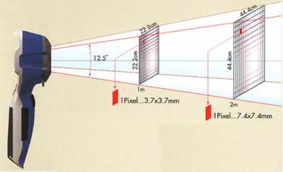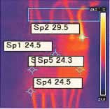 | ■解析ソフトウェア・・・クイック・レポートで測定データの整理・解析〜レポート作成 パソコンに取り込んだサーモ画像上の任意のポイントの温度値を表示することができ、検査レポートの作成が簡単に行 えます。 ![]() ■使用例 ![]() ■放射例 ![]() ■画角表