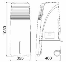 | ■特長 ●大容量タンク30L ※最低水位以下になった場合、ポンプ運転を自動停止します。 ●水道から直接給水も可能。 ※満水時には、給水を自動停止します。 ●キャスター付きで移動に便利 ■水の気化熱をを利用。環境に優しい排熱ゼロ ●水と空気でさわやかな空気を起こすから環境に優しい。 ●コンプレッサーを使わず、水の力でクールダウン。 ●消費電力170Wの省電力 ■気化熱とは 真夏の熱い日に打ち水をすると涼しくなります。これは、水が蒸発する時に地面や空気の熱を奪うため。 このように周囲の熱を奪う現象の事を気化熱といいます。 ■冷風扇のしくみ 濡れた冷却エレメントに温かい空気が通ると、気化熱によって湿った涼しい風に変わります。 自然な涼風を送り出すため、長時間の使用でも疲れやダルさを感じません。 ![]() ■施設などに、作業場などに ![]() ■給水口に直接給水します。 ![]() ■ボタン名称 ![]() ■寸法図 ![]() ![]() ■仕様