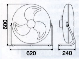 ・開放式 ・アルミ3枚 50cm 羽根 ・風量3段階 ・サーマルプロテクター付 1時間の電気代 50Hz:約2.0円 60Hz:約2.4円 |