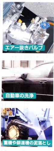 ◆自動車の洗浄・壁面の洗浄に ◆給水の早いエアー抜きバルブ付き ◆電源不要のエンジン式! |