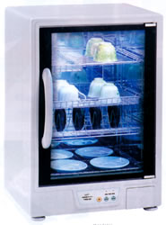 事務所やオフィスの食器類を簡単・手軽に除菌! 除菌効果を高める乾燥機能タイプ。 菌の増殖を防止します。 紫外線ランプによる除菌を採用。 直進作用と反射作用があるため、 除菌効果が上がります。 強化ガラスにより内部点灯状態が 確認できます。 (紫外線を遮る強化ガラス使用) |
