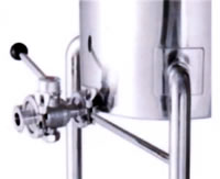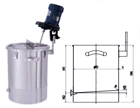 撹拌機をセットできる片勾配のステンレス容器です | カクハン機取付テーパー底タンク 品番 ME22TTK-36N 価格は下記をご覧ください |