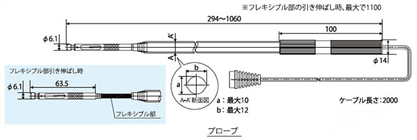 φ6.1(先端部)〜φ14(グリップ部)×294〜1060mm(ケーブルは2000mm) |