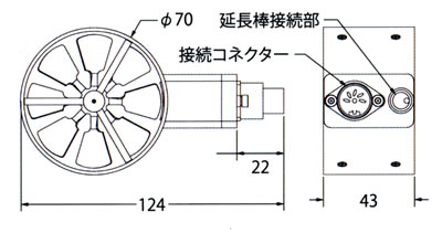 | ■特長 ●高い測定精度(±3.0%) ●用途に応じて2機種をラインナップ ●ホールド機能により容易に風速値を読み取り ●最大値・最小値の記録、読み出しが可能 ●低風速から高風速までの広い測定レンジ(0.2~40m/s) ●小さい吹出口からの風も大きな羽でバラツキ少なく測定 ■外観寸法図(単位:mm) ![]() ■仕様