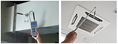 | ■特長 ●熱式風速計トップクラスの測定精度2%を達成 従来の熱式風速計では「実現困難」と言われている2%の高い測定精度を実現。校正は、0.05〜3m/sまでの微風速域と、3〜50m/sの高風速域に分けて検証を行うので、風洞の速度バラツキを最小限に抑え、高い測定精度と信頼性を確保します。 ●さまざまな測定シーンを満足させる8種類の互換プローブ 新たにラインアップした50m/sの高風速プローブなど、目的に応じ、ユーザーでプローブ交換が可能です。校正データはプローブ内部に個別に記憶されているので、プローブを交換しても高い測定精度はそのまま維持されます。 ●計測器のイメージを払拭させる美しい配色デザインと機能 従来の計測機にあった器械的なイメージを払拭する新配色デザイン。目視性に優れた青色バックライト液晶を採用しました。裏面はラバーこてぃんぐを施し、脱落防止のグリップ感を強化しました。 ![]() ●使い勝手を徹底的に追求した新コンセプトの肩掛けケース 首から下げた状態での測定値の目視が可能。 携帯型ならではのポータビリティ性能を維持しつつ、ハンズフリーを実現しました。 ![]() ●マイナス温度域の測定にも対応 従来モデルに比べ、測定温度範囲を低温側へ大幅に拡張しました。 -20℃〜70℃までの測定に対応しており、幅広い目的にご利用いただけます。 ■機能 ●風量演算機能、データログ機能など測定に必要な機能を搭載 測定条件に合わせ、あらかじめ登録いただいた25種類のダクトサイズを選択し風量演算が可能です。測定データは記憶されますので、あとからの閲覧や複数箇所の同人札も可能です。(印刷は別売りのプリンターが必要です。) ●USB通信機能と測定データの容量をアップ 本体には最大20,000データを記憶できます。Windows対応の計測ソフトウェアを用い、USB通信で測定データを簡単に転送することができます。PCからの直接制御も可能で、測定データはCSV形式で保存されます。 ●校正リマインド機能による測定品質の保証 プローブごとに最新のメーカー校正日が記憶されていますので、校正推奨日を経過すると電源投入時にアナウンスされます。アナウンス機能は個別にクリア可能です。 ![]() ■アプリケーション別プローブ選択ガイド