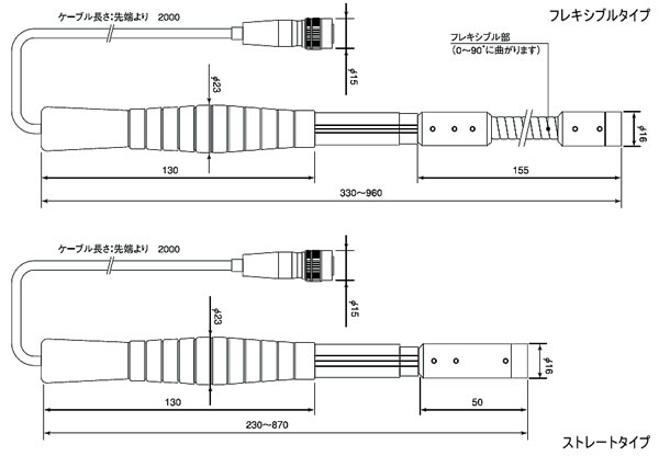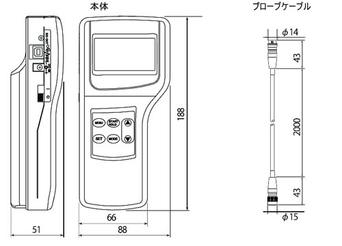 ■寸法図 ●本体、ケーブル寸法 ![]() ![]() ●プローブ寸法 ![]() ![]() |