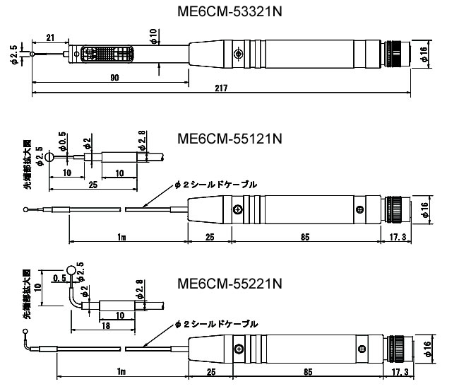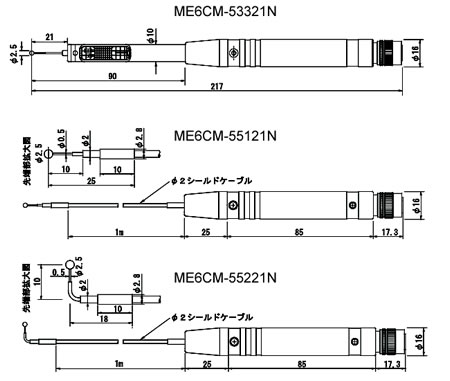 ※2:湿度プローブはME6CM-53121N、ME6CM-53321N ※3:圧力付本体はME6CM-501B0N、ME6CM-501C0Nのみ、アナログ出力付本体はME6CM-501A0N、ME6CM-501C0Nのみ ■プローブ仕様