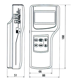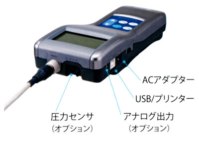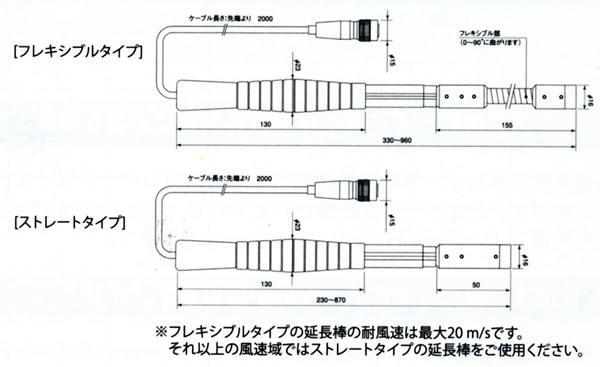 | ■特長 ●熱式風測定トップクラスの測定精度2%を達成 従来の熱式風速計では実現困難と言われている2%の高い測定精度は、高性能な風洞設備から生み出されています。 校正は、0.05〜3m/sまでの微風速域と3〜50m/sの高風速域に分けて検証を行うことで、 風洞の速度のバラツキを最小限に抑え、高い測定精度と信頼性を確保しています。 ●製品保証期間を最大2年間に拡大 高い品質をより多くの皆様に実感していただきたく、2年間の長期メーカー保証を実現しました。 ●計測器のイメージを払拭させる美しい配色デザインと機能性 従来の計測器にあった機械的なイメージを払拭する新配色デザイン。 目視性に優れた青色のバックライト液晶を採用しました。 裏面はラバーコーティングを施し、脱落防止のためグリップ感を強化しました。 ![]() ●使い勝手を徹底的に追求した“新コンセプト”の肩掛けケースを採用 現場での測定ニーズを徹底的に追求した新しい肩掛けケース(オプション)は、 従来製品では考えられなかった新しい測定の“カタチ”を提案します。 首から下げた状態での測定値目視を可能とし、携帯型ならではのポータビリティー性能を維持しつつ、 ハンズフリーを実現しました。 ![]() ●マイナス温度域の測定に対応 従来モデルに比べ、低温度域の測定範囲が大幅に拡張されました。 -20〜70℃までの測定に対応し、幅広い目的にご利用いただけます。 ●風量演算機能、データログ機能等測定に必要な機能を搭載 測定条件に合わせ、予め登録いただいた25種類のダクトサイズを選択し風量演算が可能です。 測定データは記憶されますので、後からの閲覧や複数個所の同時印刷も可能です。 (印刷は別売のプリンターが必要です。) ●USB通信機能と測定データの記憶容量をアップ 本体には最大20,000データを記憶できます。 Windows対応の計測ソフトウェアを用い、USB通信で測定データを簡単に転送することができます。 PCからの直接制御も可能で、測定データはCSV形式で保存されます。 ●校正リマインド機能による測定品質の確保 プローブごとに最新のメーカー校正日が記憶されていますので、 校正推奨日が超過すると電源投入時にアナウンスされます。 アナウンス機能は個別にクリア可能です。 ![]() ■寸法図 ●本体(単位:mm) ![]() ●プローブケーブル(付属品)(単位:mm) ![]() ●延長棒(オプション)(単位:mm) ![]() ■本体仕様