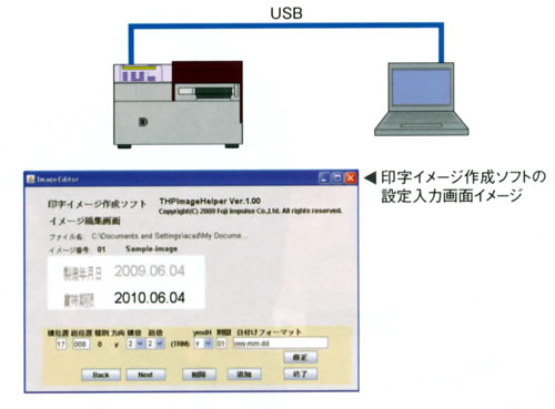 パソコン利用で任意の文字の作成印字が可能。 | サーマルプリンター 品番 MF1HP-4012F |