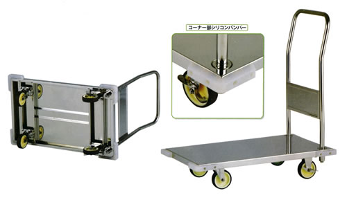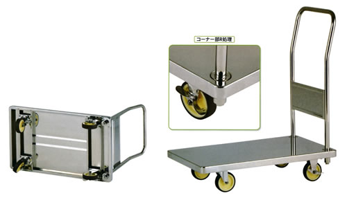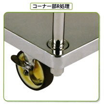 | ■特長 ●オールステンレス製 キャスター部・バンパー部を除く全ての部品はSUS304製ですのでサビや汚れに耐え清潔にご利用いただけます。 ●荷台コーナー部 壁や物に対して当たりの優しいシリコン製コーナーバンパーが施された機種と 汚れ溜まりが無く、なおかつ当たりの優しいR加工を施した機種の2タイプがあります。 ●ストッパー付 固定車にストッパーが標準で付属しています。 ![]() ![]() ■用途 ●製薬 ●理化学関連分野 ●食品製造 ●厨房 ■材質 ●甲板部:SUS304-1.2t ●ハンドル:SUS304-φ25×2.0t ●キャスター部:SUS金具が標準仕様です。 ■仕様 ●コーナー部R処理タイプ ![]()