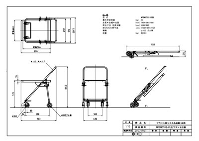 フラット折りたたみ台車(水色)/品番 MF3MCT02-FLBL 【詳細表示】