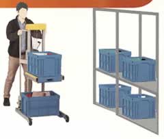 大きくて重い荷物を載せたコンテナを上げ下げするにはこれ。 手元のハンドルで上下できるし、ベース部にもコンテナを収納できるため空箱になったら折り畳んで下部へ。 爪は幅を調整できるので、コンテナ以外も対応できる。 幅広いものを扱っている大きい倉庫でさくらく動かしたいなら、これです。 最大積載荷重:150kg |