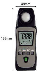 真上から30°ズレた光源測定:±2% 真上から60°ズレた光源測定:±6% 真上から80°ズレた(ほぼ真横)光源測定:±25% ■寸法図 ![]() |