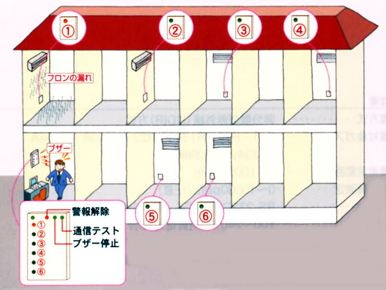 ![]() ■オプション(無線式フロンガス警報器子機) ●半導体センサ ●無線なので煩わしい配線作業が必要ありません ●電池式(高性能リチウム電池)なので電源の心配も不要です ●最大見通しで50mの通信が可能です ●警報ランプ(赤)で漏れを報せます