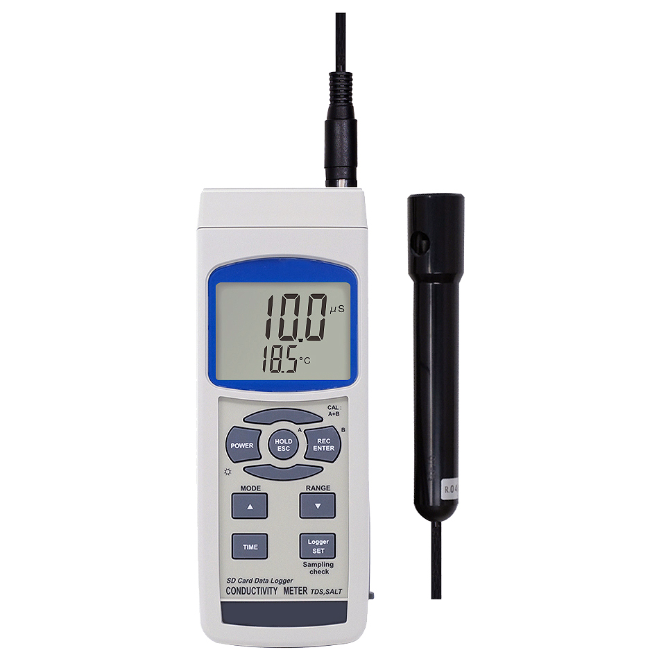 | 導電率・TDS・塩分濃度・温度の測定値を記録可能なデータロガー 測定範囲:0~200mS/cm ![]() ■特長 ●本体にセットしたSDカードに記録可能なデータロガーマルチ水質計 ![]() ●記録したデータはCSVファイルとしてExcel等のソフトに取り込み可能 ![]() ●導電率・TDS(溶解性物質)・塩分濃度の測定が可能 ●液晶バックライト付き ●別売のソフトウェアやUSBケーブル使用でPCへのリアルタイムデータ転送が可能 ●電池残量が少なくなると液晶上にイラスト表示でお知らせするローバッテリー機能搭載 ●測定値を固定するデータホールド機能搭載 ●測定値の最大値/最小値を表示するMAX/MIN値表示機能搭載 ●無操作時間約10分で電源がオフになるオートパワーオフ機能搭載 ●本体背面に卓上置きとして使用しやすいスタンド付き ■仕様