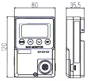 | ■特長 ●3種類の電源仕様をラインナップ 「AC電源仕様」「DC電源仕様」「乾電池仕様」 ●圧力補正機能付き 本体内部に気圧補正センサーを搭載しているため、気圧の影響による指示値の変動がありません。 ●ダウンサイジング、デザイン刷新でより使いやすく 従来機種からの小型・軽量化、表示画面サイズ拡大、上下ボタン追加により操作性向上 ●情報量が豊富なLCDキャラクタ表示 「本体動作確認マーク」「AC/DC電源表示」「乾電池残量表示」「検知ガス名表示」 ![]() ![]() ![]() ■リモートセンサー リモートセンサーを使えば離れた場所の酸素濃度をモニタリングすることもできます。 ケーブル長さは3m、5m、10m、20mから選択可能。 ![]() ■外形図 ![]() ■仕様