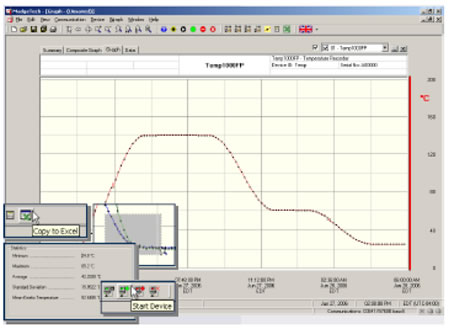 | ■概要 温度ロガーMI1HT161-TSKは、32,767メモリーを有する温度データロガーです。 温度センサーには白金抵抗体Pt-100を使用しており測定精度は±0.5℃以下と高精度です。 MI1HT161-TSKは、-200〜+250℃までの超低温から高温下まで使用できる温度データロガーです。 MI1HT161-TSKは、指定した測定間隔で温度を連続して記録します。 記録されたデータはUSBケーブルを使用しパソコンに短時間でデータをダウンロードでき、各種のデータ解析がおこなえます。 ■特長 ●測定温度範囲: -200〜+250 ℃ ●メモリー数 32,767 ●Pt-100センサーを使用し±0.5℃と高精度 ●素早いデータのダウンロード ●長い電池寿命と電池交換可能 ■用途 ●高温度モニタリング ●オーブンプロファイリング ●パウダーコーティグのキュアオーブン ●ウェットコーチングのキュアオーブン ●バッチオーブンや加熱炉の温度管理 ●コンベアオーブン ●HACCP関係 ●エンジンの研究等多種 ●超低温温度モニタリング ●血液や血漿の凍結研究 ●超低温フリーザーの温度検証 ●冷凍食品の凍結温度検査 ●コンベアフリーザーの温度検証等多種 ■Madgetech ソフトウェア Madgetech ソフトウェア Windows対応のソフトウェアは簡単に温度データをグラフ表示します。温度と時間データからFO値も自働計算します。 マウスをクリックするだけで、時間/数値表の表示やExcelへの転送、グラフの拡大やスキャン等がおこなえます。 ![]() ■仕様
