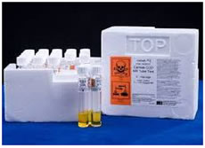 ■使用方法 (1)ガラスバイアル試薬1本に蒸留水またはイオン交換水を低/中レンジでは2ml加えます。これがブランク(ゼロ校正用)となります。検査水を別のガラスバイアル試薬に2ml加えます。高レンジではそれぞれ0.2ml加えます。 (2)蓋をしっかり閉じ、ガラスバイアルを加熱リアクターに入れ120度で2時間加熱します。 (3)ガラスバイアルを冷却後、ブランクのガラスバイアルを本体に装填しゼロ校正キーを押します。次に検査水を加えたガラスバイアルを本体に装填しテストキーを押します。約8秒でCOD値が表示します。 ※検査水のCOD測定はゼロ校正後は連続して実施できますので、短時間内で多くのCOD測定を行うことができます。 ※加熱処理したゼロ校正用ガラスバイアルは数か月使用できますので、ブランクバイアルの作成の手間を省くことができます。 ■仕様
