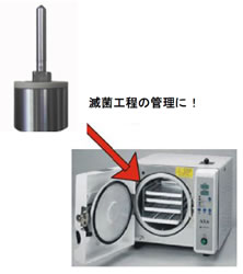 | ■概要 温度データロガーMI1SM-140Cは、本体の耐熱温度が+140℃と高く、高温高圧滅菌器(オートクレーブ)内の温度記録に主に使用されている超小型の温度データロガーです。 温度センサと温度記憶部が一体型のため、搬送式加熱装置内の温度測定にも対応します。 記憶容量は、20,225メモリーと膨大で長期間の温度測定が可能です。 温度センサには、殺菌消毒装置と滅菌処理法に関するEN ISO 285:2006標準 (Point 6.2.1.1)と同等の高精度サーミスタを使用し、分解能0.01℃、温度精度±0.1℃と高精度を実現しています。 本体はステンレスSUS 316製で、酸やアルカリに非常に強く、そのうえ5気圧耐圧型の完全防水構造 IP68適合です。 ![]() ■用途 オートクレーブやインキュベーターの温度管理などメディカル・医薬品製造分野、食品全般、医薬品、化学品のプロセス監視など。 ![]() ■使用パソコンと解析ソフト(オプション) ●Windows XP、Vista、7、8、10対応 ●マイクロプロセッサ Pentium III 400以上、メモリー128MB以上 ●CDドライブとUSBポート ●時間・温度グラフ表、時間・温度数値表 ●滅菌Fo値並びに低温殺菌Pu値自動計算表示 ●グラフ拡大 ●測定データはExcel形式で保存可能 ※MI1SM-140Cとパソコンを専用のインターフェイスと通信ケーブルで接続して行いますが、電源の必要はありません。 ![]() ■共通仕様