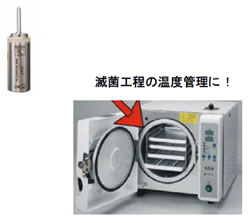 | ■概要 温度データロガーMI1SML-140MLTは、本体の耐熱温度が+140℃と高く、高温高圧滅菌器(オートクレーブ)内の温度記録に主に使用されている超小型の温度データロガーです。 温度センサと温度記憶部が一体型のため、搬送式加熱装置内の温度測定にも対応します。 記憶容量は、20,225メモリーと膨大で長期間の温度測定が可能です。 温度センサには、殺菌消毒装置と滅菌処理法に関するEN ISO 285:2006標準 (Point 6.2.1.1)と同等の高精度サーミスタを使用し、分解能0.01℃、温度精度±0.1℃と高精度を実現しています。 本体はステンレスSUS 316製で、酸やアルカリに非常に強く、そのうえ5気圧耐圧型の完全防水構造 IP68適合です。 ■用途 オートクレーブやインキュベーターの温度管理などメディカル・医薬品製造分野、食品全般、医薬品、化学品のプロセス監視など。 ![]() ![]() ■解析ソフト ●時間・温度グラフ表、時間・温度数値表 ●滅菌Fo値並びに低温殺菌Pu値自動計算表示 ●グラフ拡大 ●測定データはExcel形式で保存可能 ●MI1SML-140MLTとパソコンを専用のインターフェイスと通信ケーブルで接続して行いますが、電源の必要はありません。