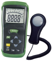 ●手動レンジ切り替えで0〜400,000 Lux/ 40,000フットキャンドル(fc)と幅広い照度測定に対応できます。 ●照度を数値並びにバーグラフで表示します。 ●光源の違いを自動補正しますので、タングステン電球、蛍光灯、水銀灯、ナトリウム灯など、どのような光源でも照度測定が可能です。 |