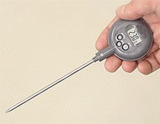 | ■特長 ●軽量で小型ペンタイプの本体・温度センサーとも防水構造(保護等級6に該当)なので、濡れた手で操作しても支障がありません。 ●電池寿命も1年以上と長く、学校や病院の給食センター、セントラルキッチン、厨房などでのご使用に最適な防水タイプの温度計です。 ●ボタン操作だけなので、誰でも簡単にすぐ使用できます。 ■仕様