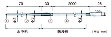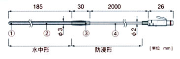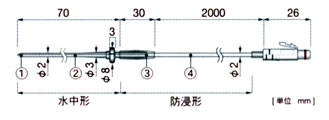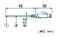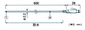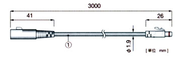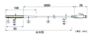 ●RTR-502/502L専用温度センサ延長ケーブル/品番 ![]() 防水性能:防まつ形(生活防水) 耐熱温度:-25~60℃ 材質:①塩化ビニール被覆電線 ※センサ1本につき1本延長できますが、常温で+0.3℃、-50℃近辺で+0.5℃の測定誤差が生じる可能性があります。
