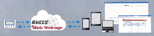スマートフォン・タブレットでデータチェック 場所とツールを選ばない 自動でデータ送信 グラフツールでデータ解析 |