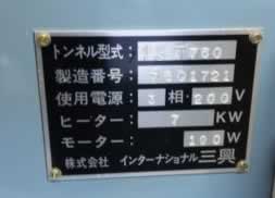 中古インターナショナル三興シュリンクトンネル 品番 IST-760EF 問い合わせ番号 Z-0522-2 完売 |