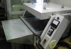 「包装機」としての優れた機能はもちろんのこと、 木型、金型、石膏を使用することで「成形機」としても利用できます。 機構的にはエレベーター(垂直上下動方式)とワンタッチ(片手ハンドル操作方式)を採用しています。 工場、オフィス、家庭で簡単に作業できます。 |