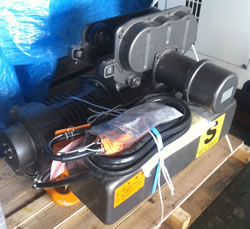 高頻度用 許容使用頻度・巻速度共に業界トップクラス。 マイコンによる過荷重警報装置を内蔵して、さらに安全性を向上させています。(S形) 横行はプレーンロリータイプです。 手押し横行タイプです。 押しボタンは上下2点押しボタンです。 電動横行ではありません。 |