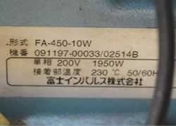 | 中古富士インパルスプリンター付オートシーラー/品番 FA-450-10W 問い合わせ番号 Z-0528-1 |