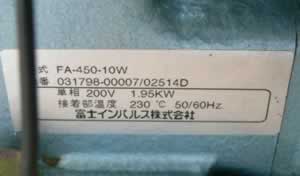 | 中古富士インパルスプリンター付オートシーラー/品番 FA-450-10W 問い合わせ番号 Z-0536-1 |